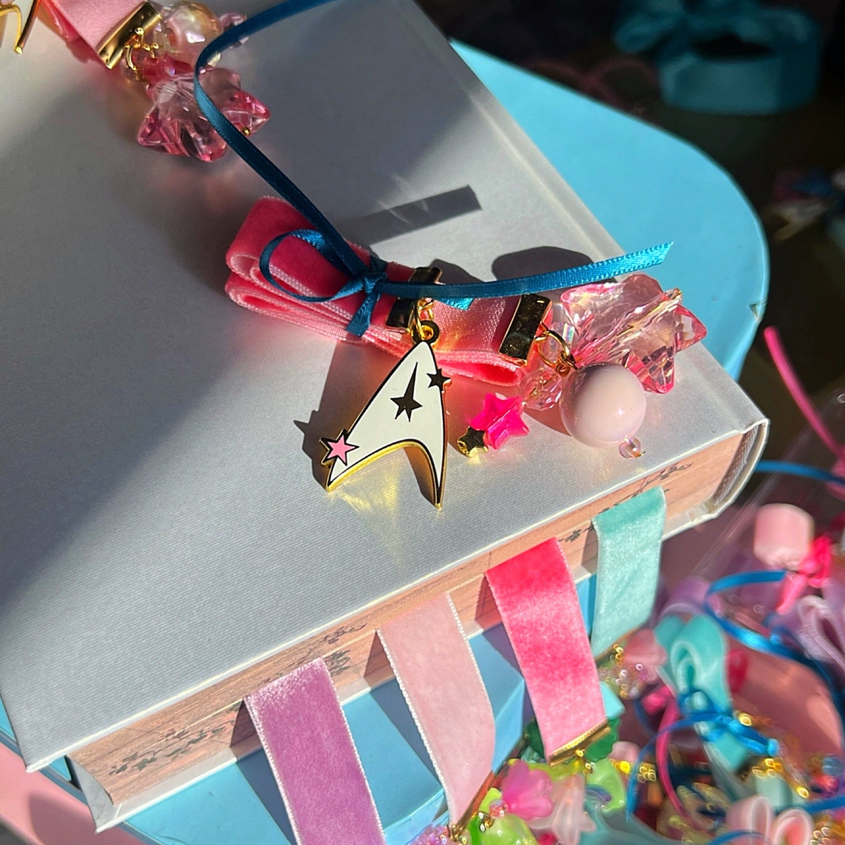 These bookmarks have been such a labor of love. Each one has a hard enamel charm on one end, and its own unique arrangement of beads and charms on the other (no two are exactly alike!) I have had so much fun making these and creating each one to be its own unique little piece of art!